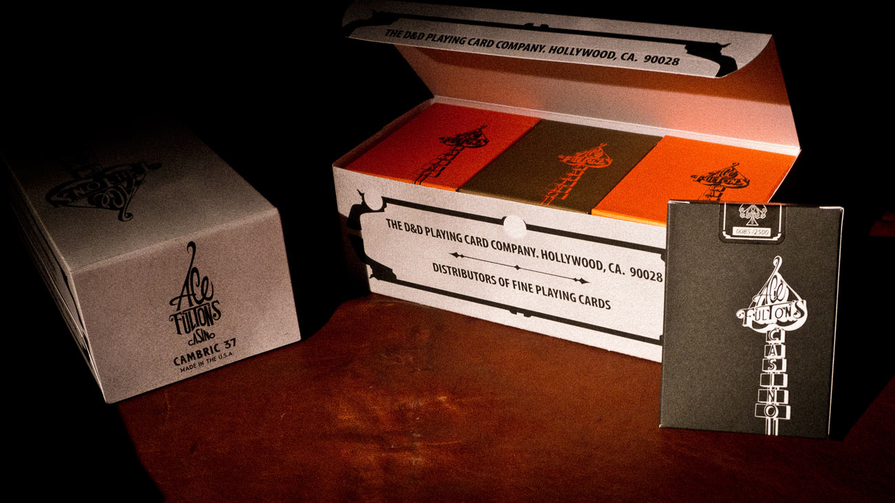 Fulton’s Playing Cards are the brainchild of Brad Fulton. Each deck of playing cards are meticulously designed, and expertly produced in the USA at the USPCC (United States Playing Card Company).